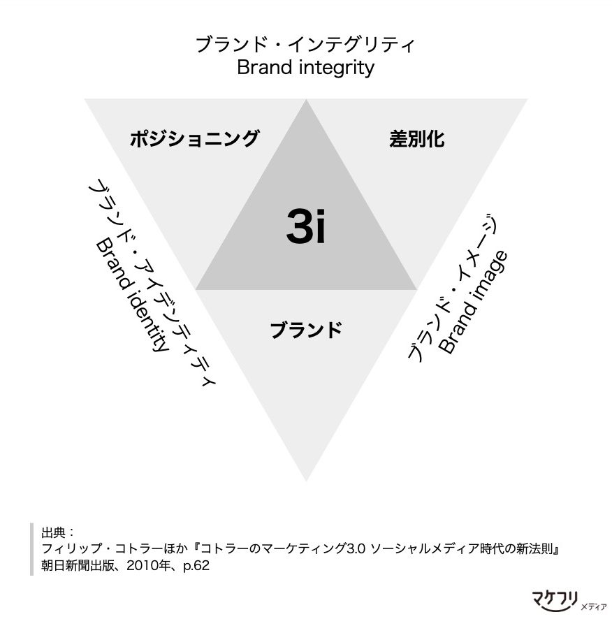 3つのiはそれぞれブランド・アイデンティティ(identity)、ブランド・イメージ(image)、ブランド・インテグリティ(integrity)を指します。